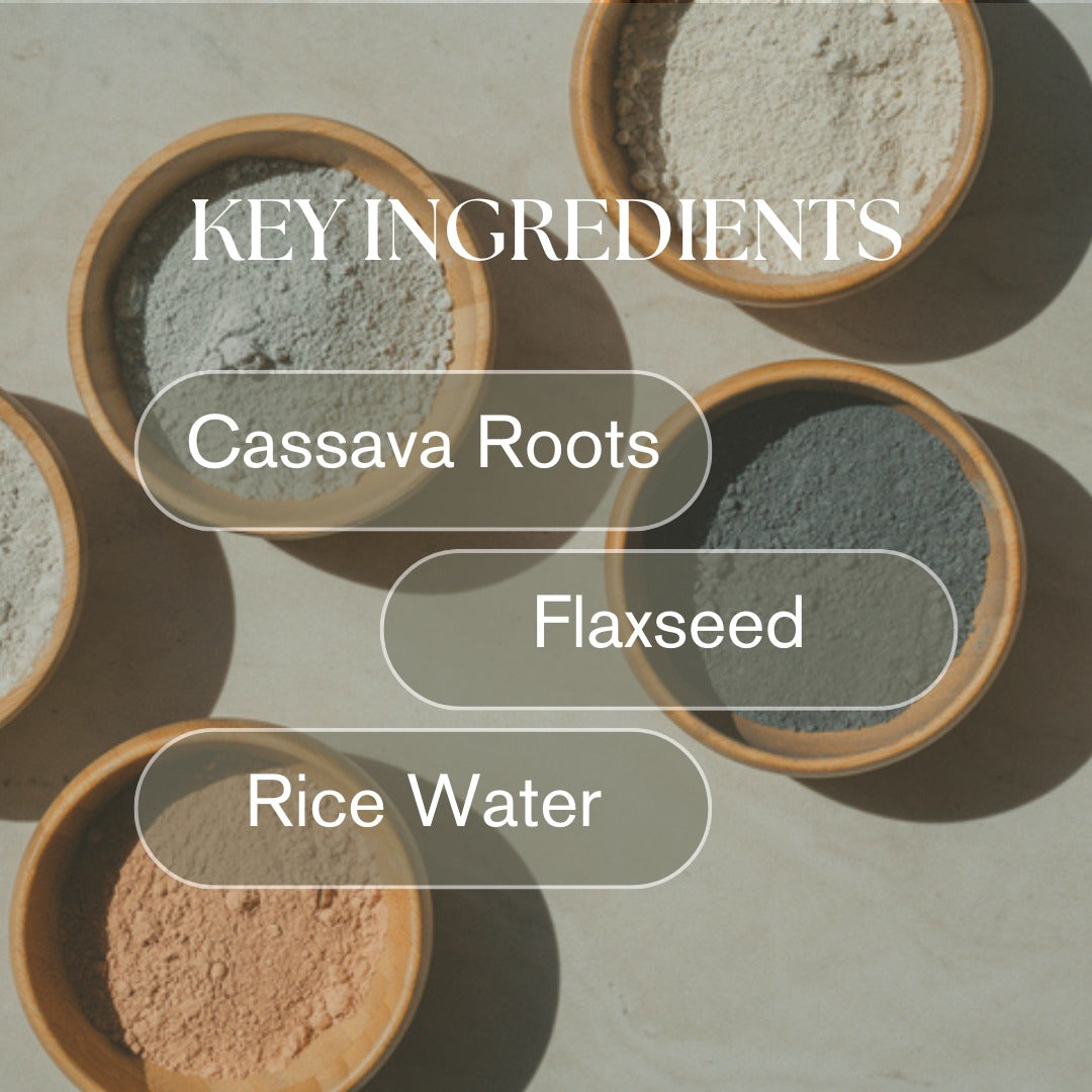 Aqua (Water), Aloe Barbadensis Leaf Juice (Aloe Vera), Nelumbo Nucifera Flower Water (Lotus Flower Water), Cetyl Alcohol (Fatty Alcohol/Emollient), Cetearyl Alcohol (Fatty Alcohol/Emollient), Behentrimonium Chloride (Conditioning Agent), Behentrimonium Methosulfate (Mild Detangler), Cetrimonium Chloride (Anti-Static Conditioner), Cyclopentasiloxane (Silicone for Smoothness), Dimethicone (Silicone for Shine), PEG-12 Dimethicone (Water-Soluble Silicone), Glycerin (Natural Humectant), Carthamus Tinctorius Oleosomes (Safflower Oleosomes), Astrocaryum Murumuru Seed Butter (Murumuru Butter), Orbignya Speciosa Kernel Oil (Babassu Oil), Helianthus Annuus Seed Oil (Sunflower Oil), Cocos Nucifera Oil (Coconut Oil), Sesamum Indicum Seed Oil (Sesame Oil), Brassica Campestris Seed Oil (Rapeseed Oil), Withania Somnifera Root Extract (Ashwagandha), Curcuma Longa Root Extract (Turmeric), Emblica Officinalis Fruit Extract (Amla), Ocimum Sanctum Leaf Extract (Tulsi/Holy Basil), Hibiscus Sabdariffa Flower Extract (Hibiscus), Jasminum Officinale Flower Extract (Jasmine), Hydrolyzed Wheat Protein (Wheat Protein), Hydrolyzed Rice Protein (Rice Protein), Hyaluronic Acid (Hydrator), Lactobacillus Ferment Filtrate (Probiotic Ferment), Leuconostoc/Radish Root Ferment Filtrate (Natural Preservative), Polypeptide-11 (Peptide), Polypeptide-1 (Peptide), Oligopeptide-2 (Peptide), Oligopeptide-10 (Peptide), Polypeptide-9 (Peptide), Benzyl Alcohol (Preservative), Dehydroacetic Acid (Preservative), Gluconolactone (Mild Preservative), Sodium Benzoate (Preservative), Disodium EDTA (Chelating Agent), Citric Acid (pH Adjuster), Parfum (Fragrance Blend).